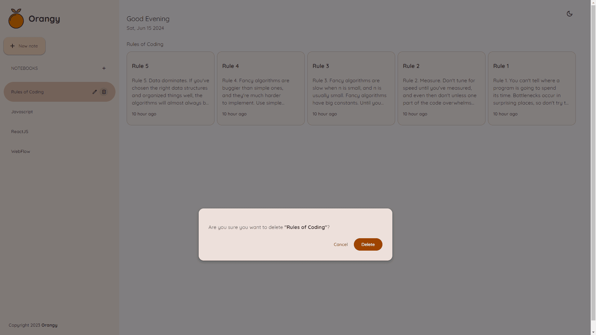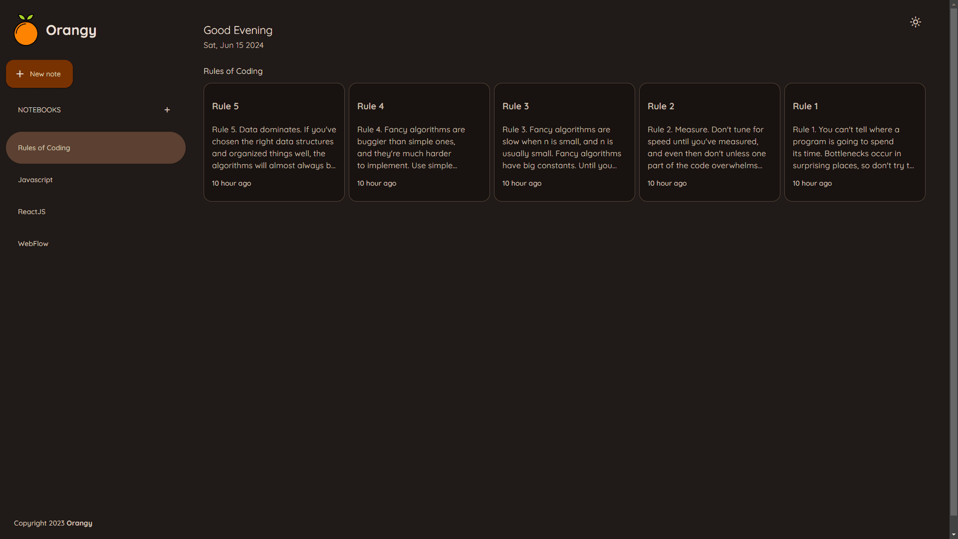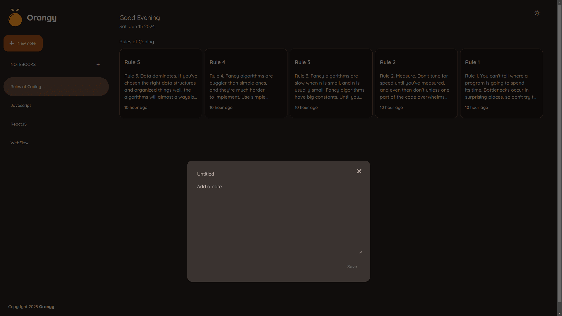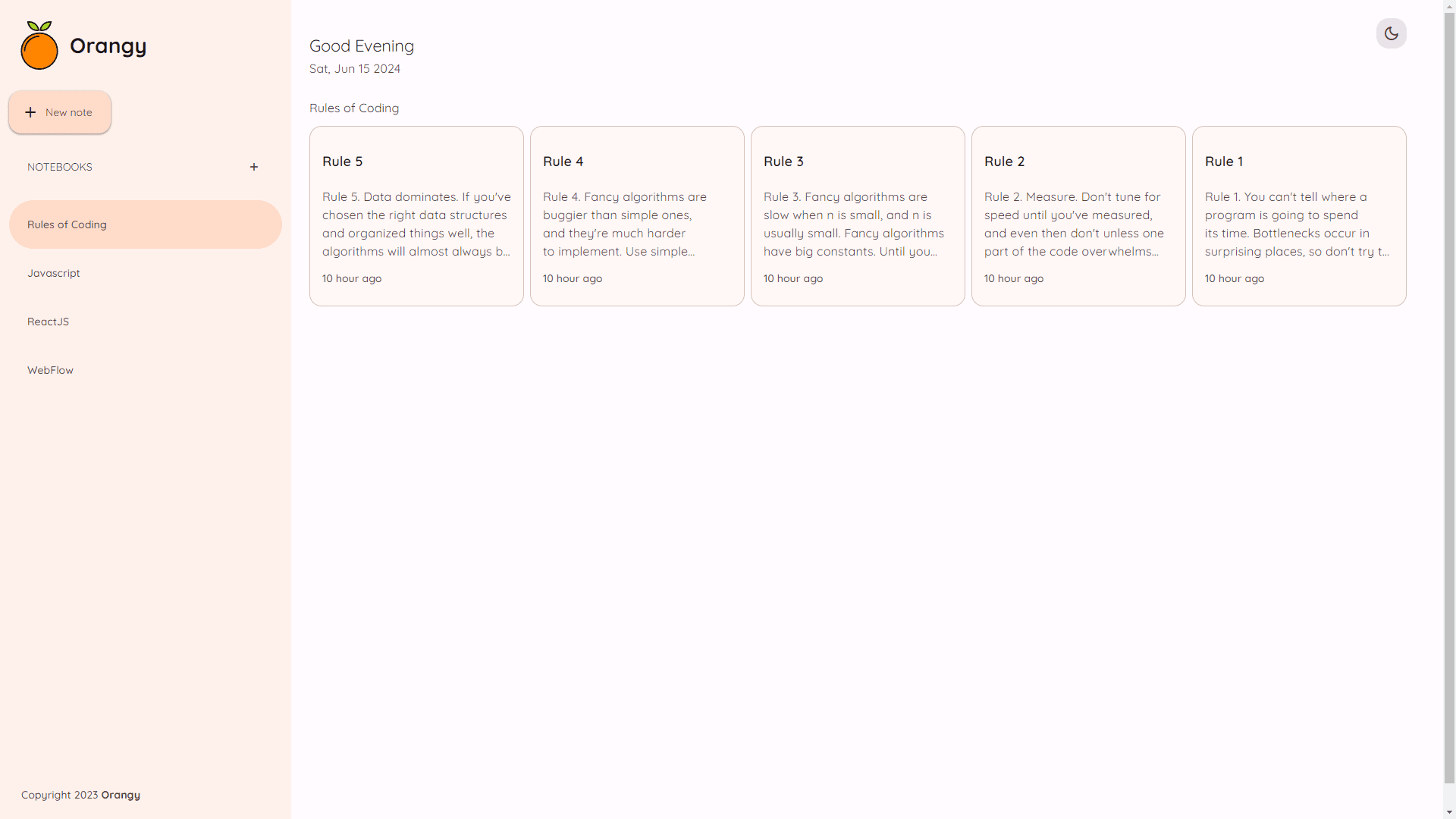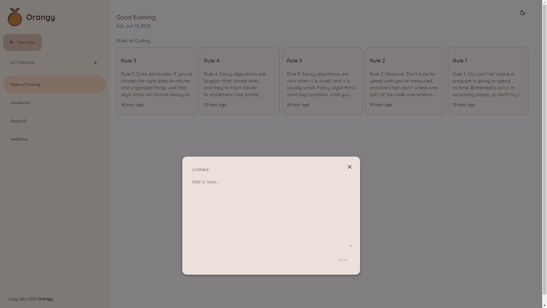Orangy is a sleek, user-friendly web app for digital note-taking. It offers customizable dark and light modes and allows users to efficiently create and manage multiple notebooks, enhancing productivity and organization.